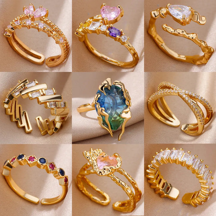 Zircon Heart Rings for Women Stainless Steel Gold Color Open Ring 2024 Trend Design Female Couple Wedding Waterproof Jewerly